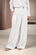 Siluet palazzo yang lebar memberikan kesan chic, membuat kaki terlihat lebih jenjang dan proporsional.