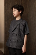 Kemeja anak ini dirancang dengan potongan Reguler Formal yang memberikan siluet tubuh tegap namun tetap nyaman. Menampilkan sentuhan tegas melalui panel depan asimetris berbalut brokat yang memberikan dimensi tekstur mewah dan eksklusif. Penggunaan kancing tersembunyi menjaga tampilan minimalis, sementara detail kancing pada panel hadir sebagai aksen dekoratif yang memperkuat karakter desain. Kemeja anak ini bisa menjadi pilihan untuk berbagai acara istimewa bersama keluarga maupun momen formal yang membutuhkan perpaduan antara tradisi dan high-fashion.