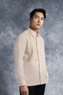 Penggunaan kancing tersembunyi menjaga tampilan tetap bersih dan minimalis, memberikan kesan modern pada kerah kemeja klasiknya. Kemeja ini menjadi pilihan tepat untuk berbagai acara istimewa maupun momen formal yang membutuhkan perpaduan harmonis antara sentuhan etnik dan high-fashion.