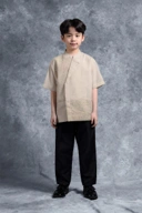 Penggunaan kancing tersembunyi mempertahankan estetika minimalis, sementara detail kancing pada panel hadir sebagai aksen dekoratif yang memperkuat karakter desain yang unik. Beskap ini adalah pilihan utama untuk prosesi adat, pernikahan, maupun momen spesial yang memadukan kedalaman tradisi dengan standar gaya hidup modern.