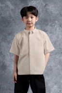 Penggunaan kancing tersembunyi menjaga tampilan tetap bersih dan minimalis, memberikan kesan modern pada kerah kemeja klasiknya. Kemeja ini menjadi pilihan tepat untuk berbagai acara istimewa maupun momen formal yang membutuhkan perpaduan harmonis antara sentuhan etnik dan high-fashion.