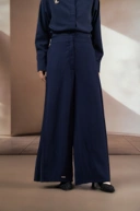 Desain palazzo dengan detail pleats membuat celana ini cocok untuk tampilan formal maupun smart casual, mudah dipadukan dengan berbagai atasan.
