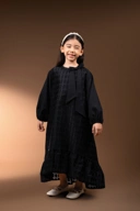 Dress anak dengan kombinasi bahan brokat organza premium dan bahan polos bertekstur yang memberikan kesan classy dan manis.