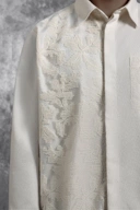Kemeja ini dirancang dengan potongan Reguler Formal yang memberikan siluet rapi dan proposional. Kemeja ini memberikan sisi tegas melalui desain Asimetris yang dilapisi Brukat dengan sentuhan modern yang unik. Penggunaan Hidden Button memastikan tampilan depan menjadi clean dan minimalis, sementara detail patch pocket di dada kiri dan lengan panjang memperkuat karakter eksklusifnya. Kemeja ini sangat cocok untuk acara formal, perhelatan mewah, maupun momen spesial penting lainnya.