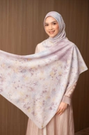 Fleur de Rêve Scarf ini menghadirkan taman bunga abstrak yang berpendar dalam palet pastel. Kelopak besar digambar samar seperti bunga yang mekar perlahan, sementara rangkaian bunga kecil di tepinya hadir mengelilingi dengan anggun seperti taman kecil yang sedang bermekaran.
