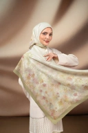 Palettia Scarf hadir dengan goresan kuas dengan palet warna yang mengalir indah, membentuk impresi taman bunga dirangkai dari potongan warna, cahaya, dan ritme visual yang harmonis, menangkap suasana yang teduh dan tentram.