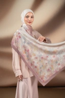 Palettia Scarf hadir dengan goresan kuas dengan palet warna yang mengalir indah, membentuk impresi taman bunga dirangkai dari potongan warna, cahaya, dan ritme visual yang harmonis, menangkap suasana yang teduh dan tentram.