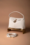 Tas ini menghadirkan perpaduan antara elegansi modern dan sentuhan artistik yang unik. Tas ini tampil menawan dengan tekstur kulit berbutir halus yang memberi kesan mewah namun tetap understated. Bagian flap-nya memiliki garis desain yang tegas, sementara aksesoris depan berbentuk oval bernuansa doff gold dengan logo hey local menjadi fokus perhatian yang memberikan karakter eksklusif. Pegangan atas yang kokoh menambah kenyamanan saat dibawa, menjadikannya pilihan sempurna untuk tampilan sophisticated, baik untuk acara formal maupun gaya chic harian.