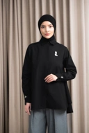 Kancing gold pada cuff asimetris menambah kesan manis pada kemeja