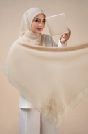 Tiama Scarf terinspirasi dari indahnya lekuk motif bunga yang bermekaran, berpadu dengan elemen lembut yang mencerminkan keanggunan, serta disempurnakan dengan finishing bordir yang indah.