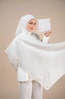 Tiama Scarf terinspirasi dari indahnya lekuk motif bunga yang bermekaran, berpadu dengan elemen lembut yang mencerminkan keanggunan, serta disempurnakan dengan finishing bordir yang indah.