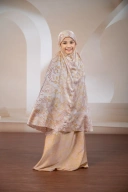 Mukena dengan material bahan silk yang halus dan lembut, nyaman digunakan saat beribadah