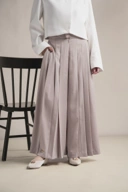 Celana dengan detail rempel lembut yang memberikan sentuhan feminin pada siluet modern.