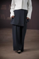 Celana modern dengan layer rok di bagian luar yang memberikan tampilan unik, edgy, dan lebih fashionable.