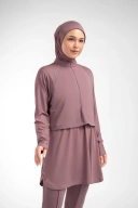Kombinasi desain crop dan lapisan bawah panjang menciptakan tampilan unik yang fungsional dan modis.