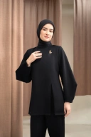 Blouse berbahan premium scuba dengan karakter tegas namun tetap lembut, menghadirkan tampilan yang struktural sekaligus nyaman.