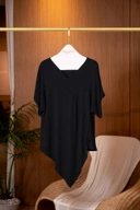 Dengan bukaan leher v neck dan detail jahitan unik pada bagian depan