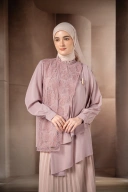 Model blouse dengan kombinasi lace bunga 3D embroidery