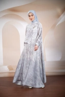 Gaun dengan desain yang anggun, motif bunga geometris dengan detail warna senada two-tone yang cantik
