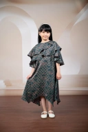 Gaun anak dengan desain asimetris yang modern