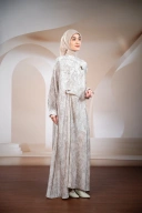 Gaun dengan desain yang anggun, motif bunga geometris dengan detail warna senada two-tone yang cantik