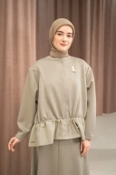Kombinasi materialnya menghadirkan tampilan modern dengan silhouette crop yang tegas dan proporsional.