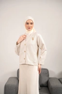Desain outer jaket yang memadukan keanggunan dengan potongan fit body dan saku,
