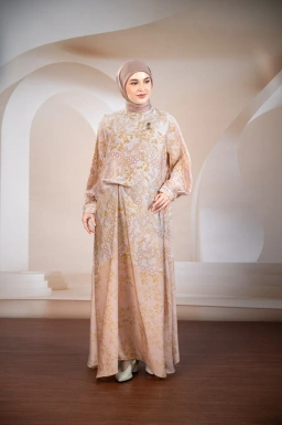Gaun dengan desain yang anggun, motif bunga geometris dengan detail warna senada two-tone yang cantik