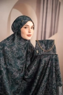 Material berbahan satin bermotif geometris bunga yang halus, dengan detail warna senada two-tone