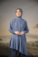 Tunic pleats dengan detail flowy asymmetric cutting pada bagian bawah