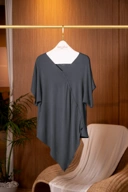 Dengan bukaan leher v neck dan detail jahitan unik pada bagian depan