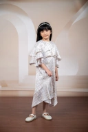 Gaun anak dengan desain asimetris yang modern
