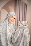 Mukena dengan material bahan silk yang halus dan lembut, nyaman digunakan saat beribadah