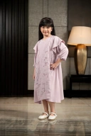 Model dress anak dengan kombinasi bahan burnout bermotif bunga yang manis