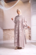 Dress dengan kombinasi outer dengan bahan burn out bermotif bunga