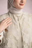 Aksen bahan burnout bermotif bunga menambah kesan feminin dan anggun pada desain.