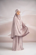 Mukena dengan material bahan satin yang halus dan lembut, nyaman digunakan saat beribadah