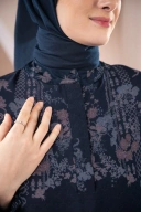 Model tunik dengan kombinasi bahan chiffon dengan motif bunga