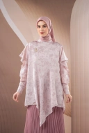 Model tunik dengan detail rumbai asimetris di bagian tangan dan bawah, berkesan modern