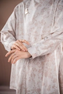 Model tunik dengan detail rumbai asimetris di bagian tangan dan bawah, berkesan modern