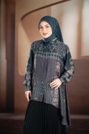 Desain kemeja tunik yang simple dengan potongan asimetris membuat tampilan terlihat modern