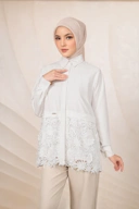 Terdapat detail brocade 3D bermotif bunga yang manis pada bagian bawah blouse