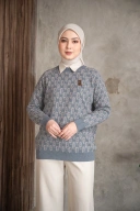 Model sweater dengan siluet santai cocok untuk dipakai berlapis dipadukan dengan kemeja polos berkerah