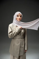 Potongan pashmina berbentuk persegi panjang, model mudah di variasikan