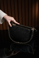 Tas yang memiliki beberapa saku yang mengait satu dan lainnya. Dilengkapi dengan tali yang di sesuaikan dengan button snap. Dengan tambahan tali rantai yang dapat dilepas-pasang sesuai dengan look yang diinginkan.