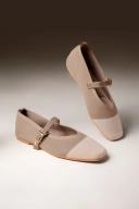 Sepatu ini merupakan model flat shoes berbahan knit (rajut) dengan desain yang simpel namun elegan. Mengusung gaya Mary Jane yang khas, sepatu ini dilengkapi dengan strap melintang di bagian atas yang dapat disesuaikan melalui buckle berwarna gold, memberikan sentuhan feminin dan klasik. Material rajut yang digunakan memberikan kesan ringan, fleksibel, dan breathable, membuatnya nyaman dipakai dalam waktu lama, terutama di cuaca hangat.Dilengkapi dengan loop kecil di bagian belakang, sepatu ini juga mudah dikenakan. Dengan kombinasi antara kenyamanan, estetika, dan fungsi, sepatu knit ini cocok untuk wanita aktif yang menginginkan tampilan stylish tanpa mengorbankan rasa nyaman.