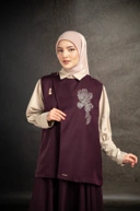 Vest tanpa lengan dengan detail bordir bunga di bagian dada