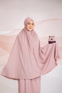 Satu set mukena dilengkapi dengan pouch two tone dan sajadah
