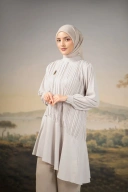 Tunic pleats dengan detail flowy asymmetric cutting pada bagian bawah
