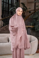 Satu set mukena dilengkapi dengan pouch quilting dan sajadah